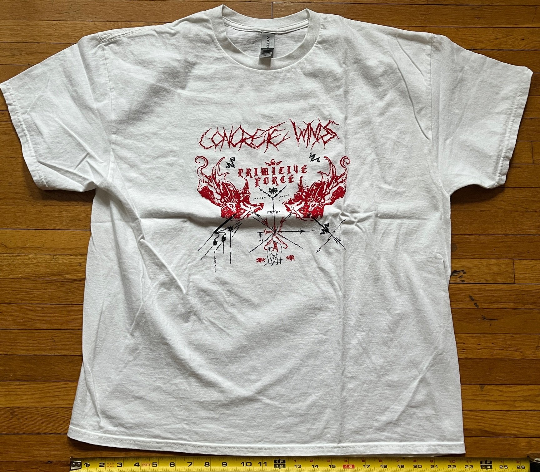 CONCRETE WINDS is a powerhouse of a band. Feral and obnoxious. Unfortunately the print on this shirt does not translate that. I wish the print was atleast twice as big. Love this band but the print is a disappointment.